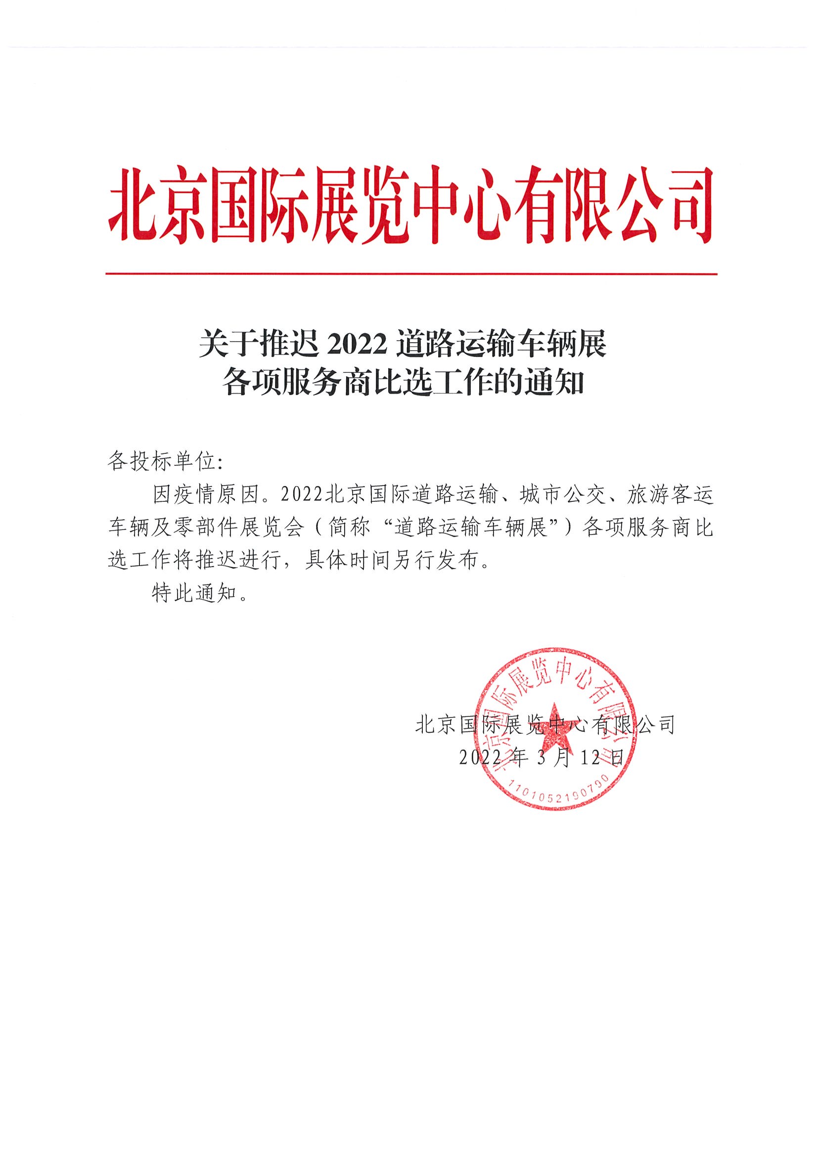 關(guān)于推遲2022道路運(yùn)輸車輛展各項(xiàng)服務(wù)商比選工作的通知
